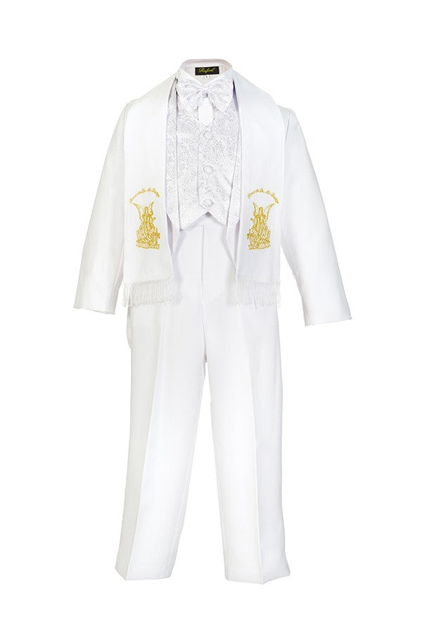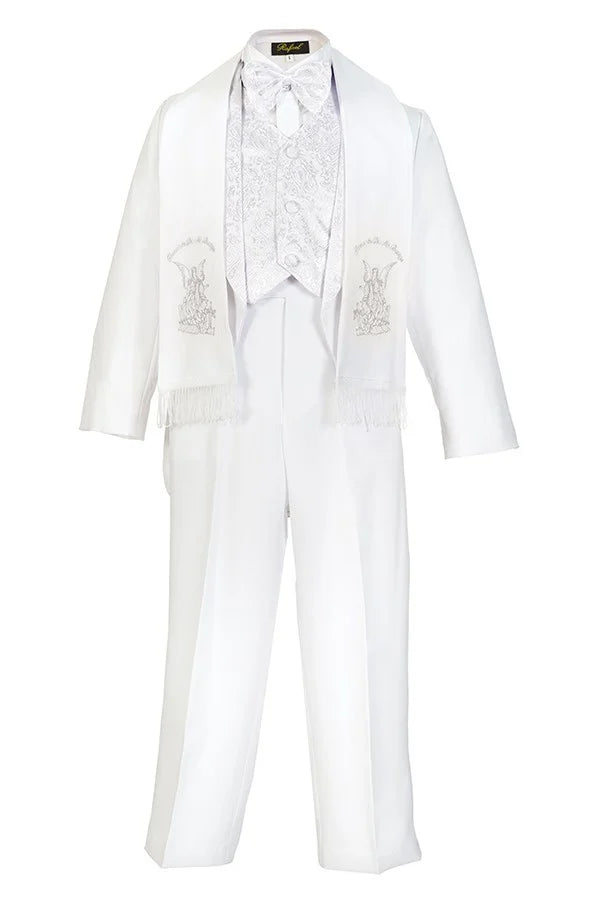 Magen kids boys 6 pcs religion formal tuxedo angel print with bow tie and scarf comes 2 color White/silver and white/gold