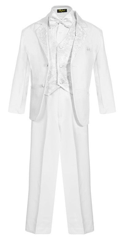 kids boys 5 pcs formal tuxedo with bow tie comes 2 color White/Black